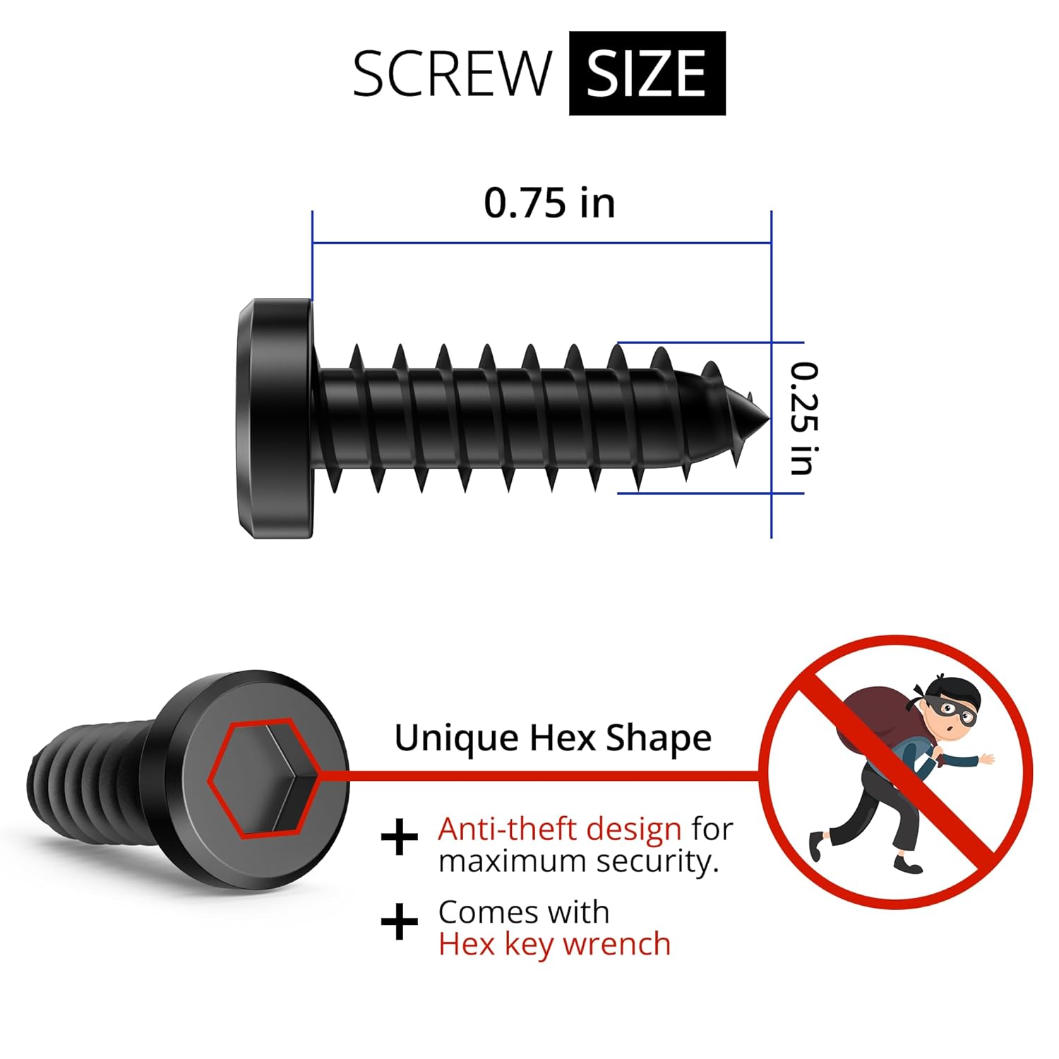 Protect your license plate with premium anti-theft screws engineered for a tight, vibration-free fit. Made from rust-resistant stainless steel, these fasteners help prevent rattling while adding an extra layer of security for cars, motorcycles, and trucks. Each set includes self-tapping screws, nylon inserts, and a hex key for a quick, straightforward installation and a clean, finished look.